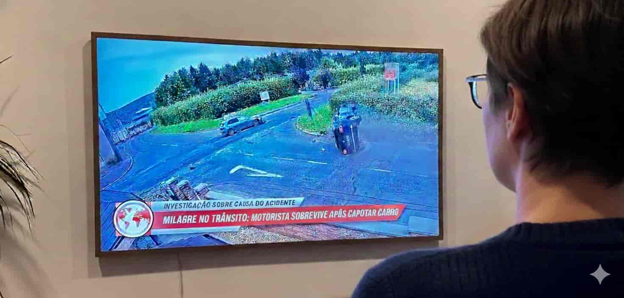 Pelo para-brisa estilhaçado, percebi que meu carro havia despencado de uma ladeira.
